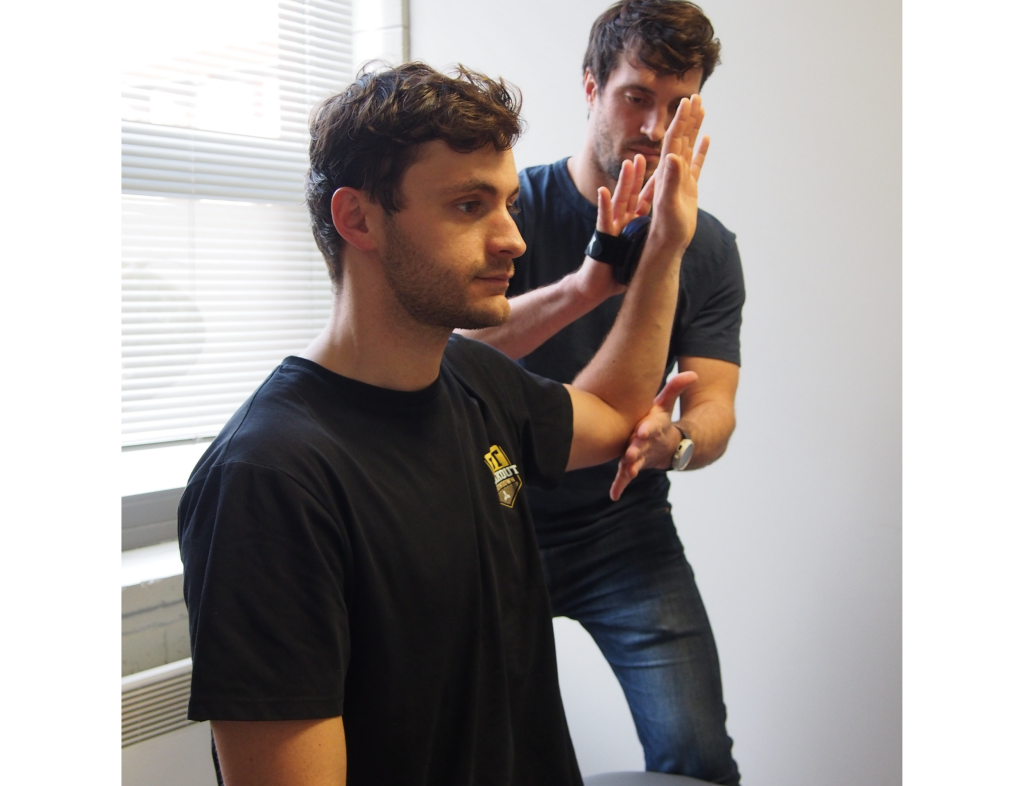 Je mesure la force des différents muscles de ton épaule pour identifier lesquels sont affaiblis.